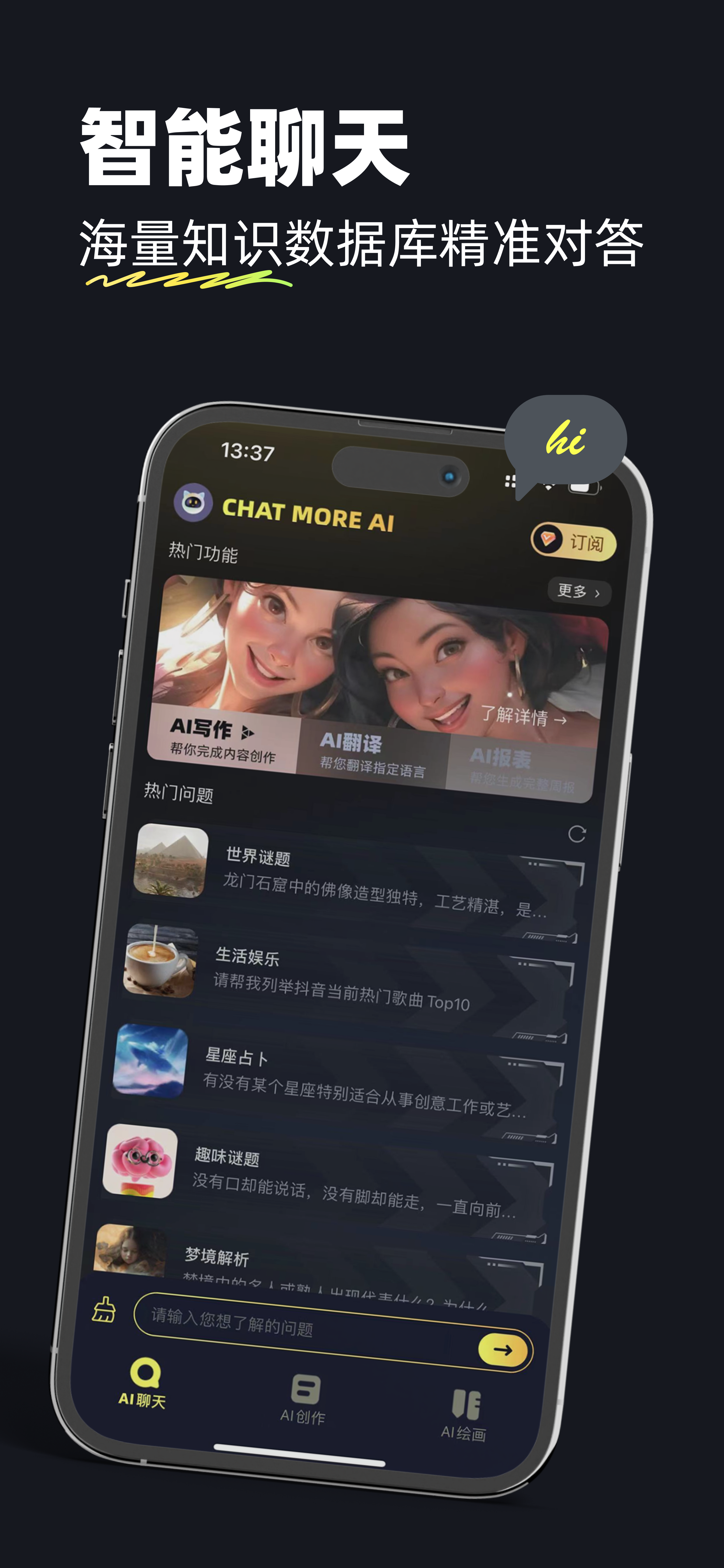 ChatMore Al是一款最先进的人工智能机器人,它可以跟您对话,帮您创作,代替您的部分工作,并具有自主学习能力,可以满足您工作中或生活中的各种问题。随时随地提供贴心服务,根据您的需求,高效且准确地回答您的各种问题并撰写任何类型的文章,让您的大脑得到释放,缓解词穷压力,提高生产效率。